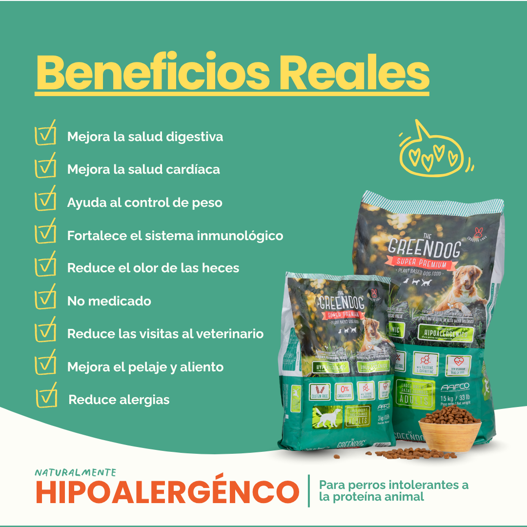 KarenYa vengo comprando el alimento hace poco más de un año, excelente..mi perrita tiene alergia alimentaria y el alimento The Greendog es perfecto para ella..